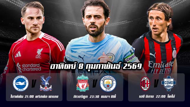 ทีเด็ดบอลคืนนี้ : เจาะลึก 3 บิ๊กแมตช์ วันอาทิตย์ที่ 8 ก.พ. 69