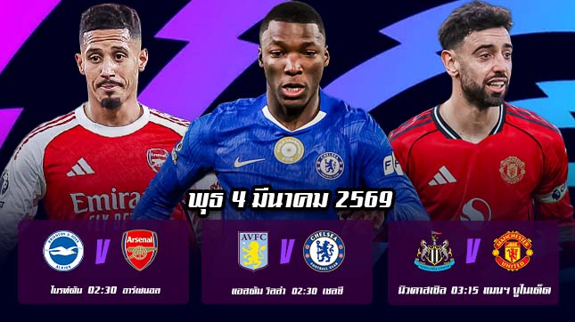 Posted inวิเคราะห์บอล (Analysis) ทีเด็ดบอลคืนนี้ พรีเมียร์ลีก วันที่ 4 มี.ค. 69 วิเคราะห์ทีเด็ดบอลคืนนี้ 3 คู่เดือดจากเวทีพรีเมียร์ลีก อังกฤษ ฤดูกาล 2025/26 วันพุธที่ 4 มีนาคม 2569 สมรภูมิพรีเมียร์ลีก อังกฤษ ในค่ำคืนวันพุธที่ 4 มีนาคม 2569 … มีนาคม 4, 2026Tags: ทีเด็ดบอล, ทีเด็ดบอลคืนนี้, นิวคาสเซิล พบ แมนฯ ยูไนเต็ด, แอสตัน วิลล่า พบ เชลซี, ไบรท์ตัน พบ อาร์เซน่อล